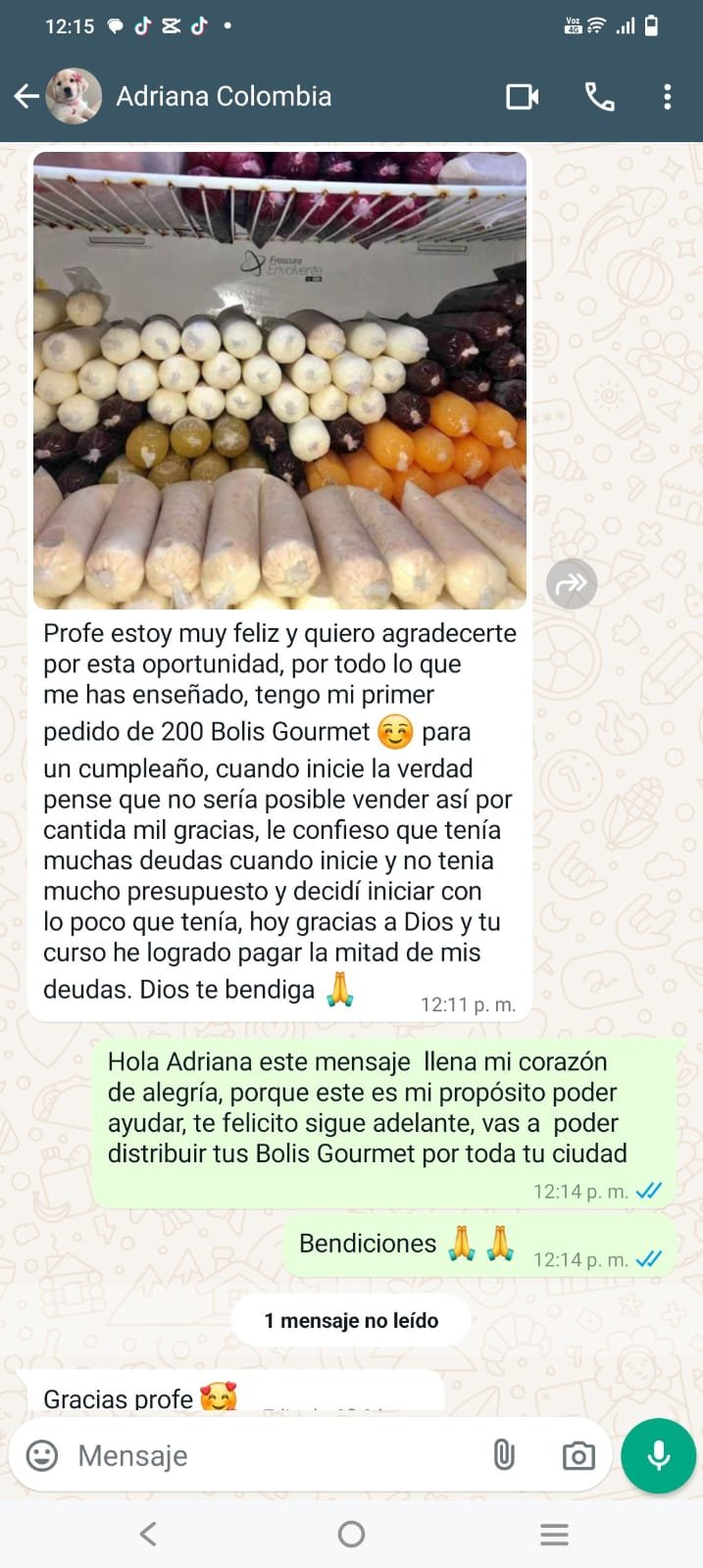 Los testimonios (incluidos en este sitio web) son experiencias reales de personas que han tomado el curso “Bolis Gourmet”. Sus opiniones fueron compartidas de manera completamente voluntaria.